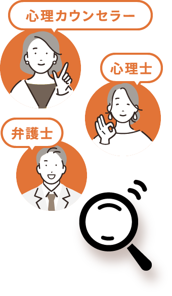 公認心理師、臨床心理士、夫婦問題に詳しいカウンセラー、弁護士、社会福祉士など、実績と資格を持つ専門家が在籍しています。50名以上の中から、ご自身に合う相談相手を選べます。