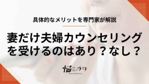 1人での相談は、相手のことを気にせず、まず自分に向き合い気持ちを整理できるのが大きなメリット。その後、必要に応じて夫婦カウンセリングや話し合いをするとなった際もスムーズに進みやすくなります。
